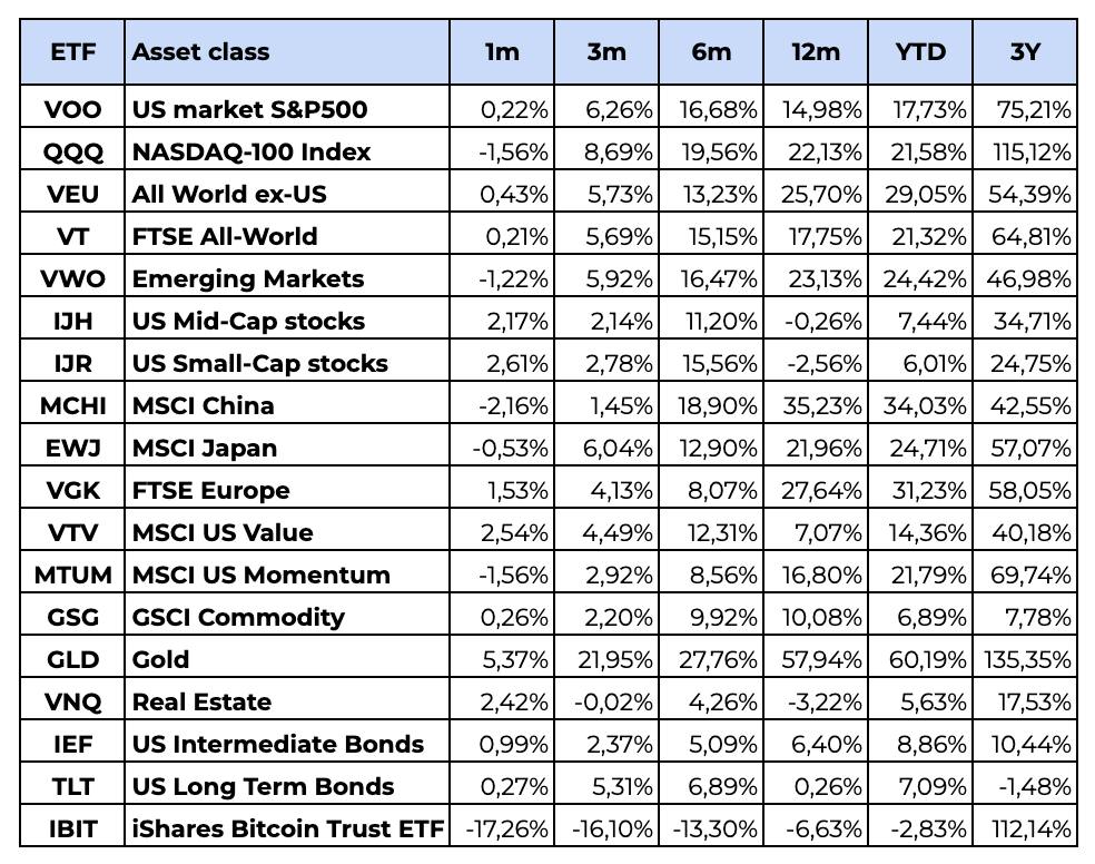 Wyniki za ostatni miesiąc dla wybranych światowych klas aktywów w ujęciu dolarowym.